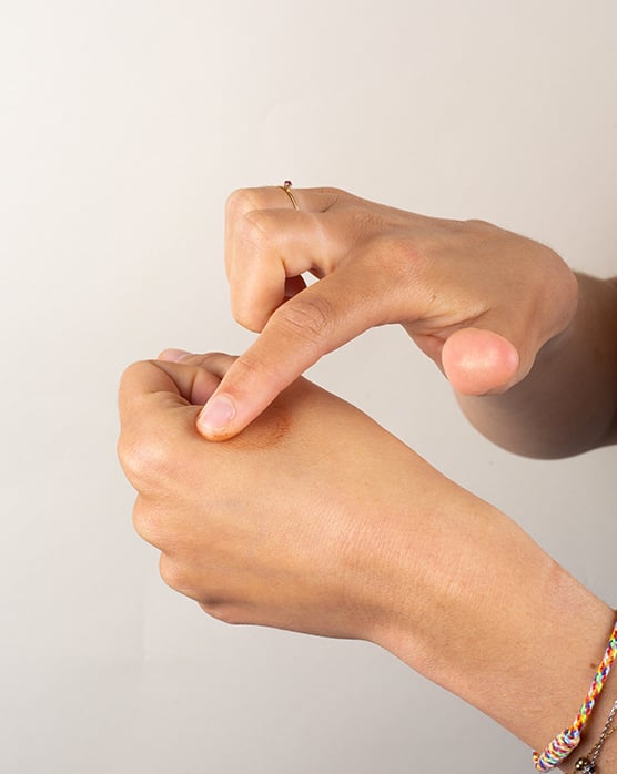 Both options are available: with a finger for a more generous, natural application and with a brush for a more precise application.